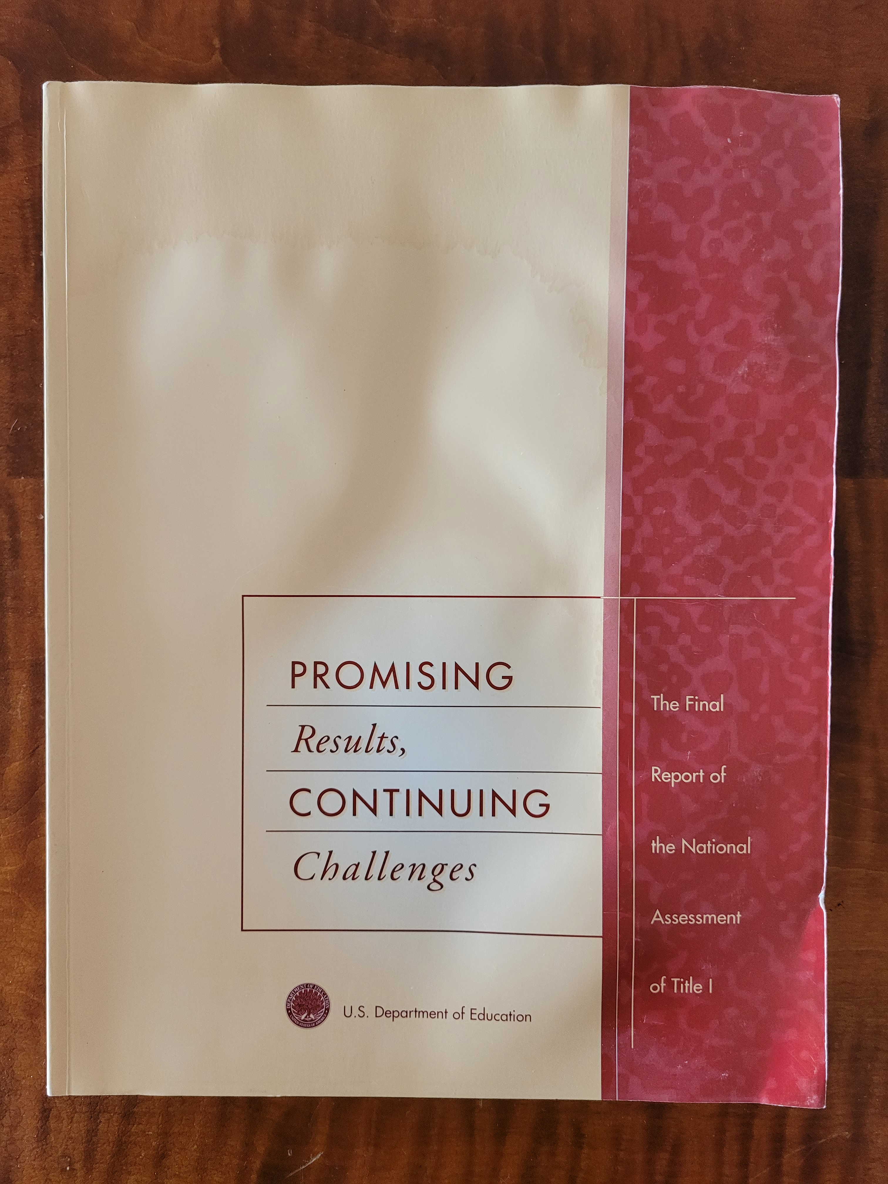 This was an important report, as its findings about the Title I (formerly Chapter 1) program fed into the congressional discussions to rework the Elementary and Secondary Education Act of 1965 into the No Child Left Behind Act of 2001.